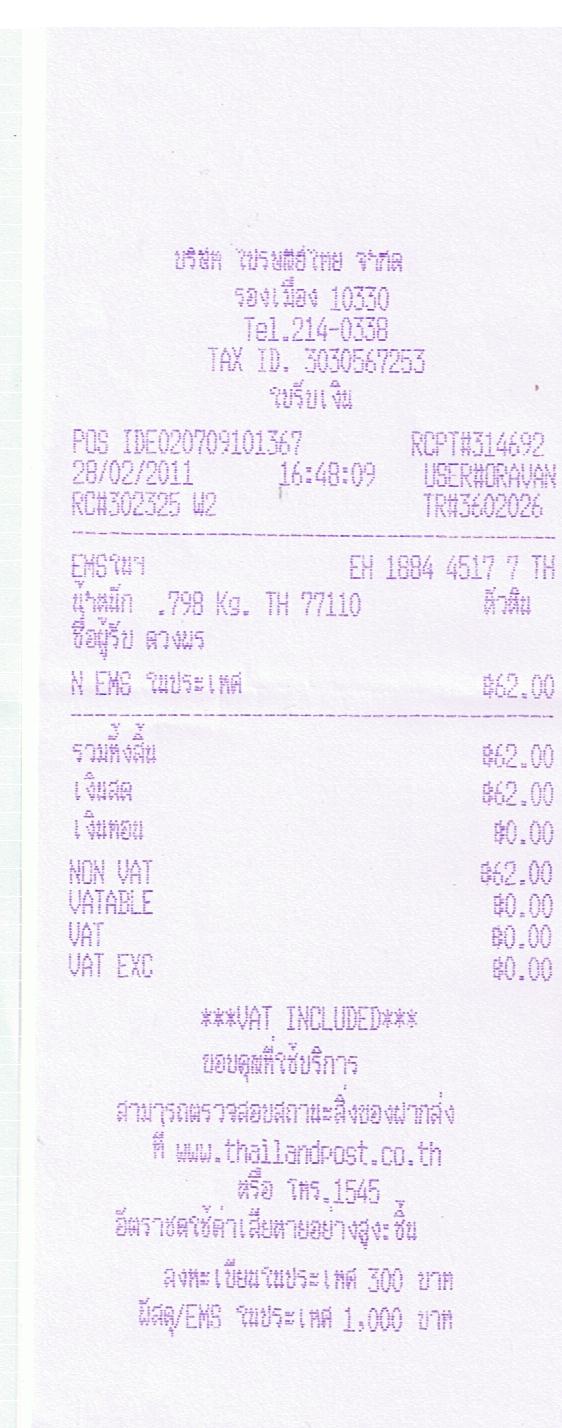 คุณดวงพร > EH 188445177 TH ส่งสินค้าให้แล้วนะคะ โอกาศหน้าเชิญใหม่นะคะ ขอบคุณมากๆค่ะ