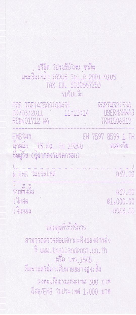 คุณสุจิตรา > EH 759785991 TH ส่งสินค้าให้แล้วนะคะ โอกาศหน้าเชิญใหม่นะคะ ขอบคุณมากๆค่ะ