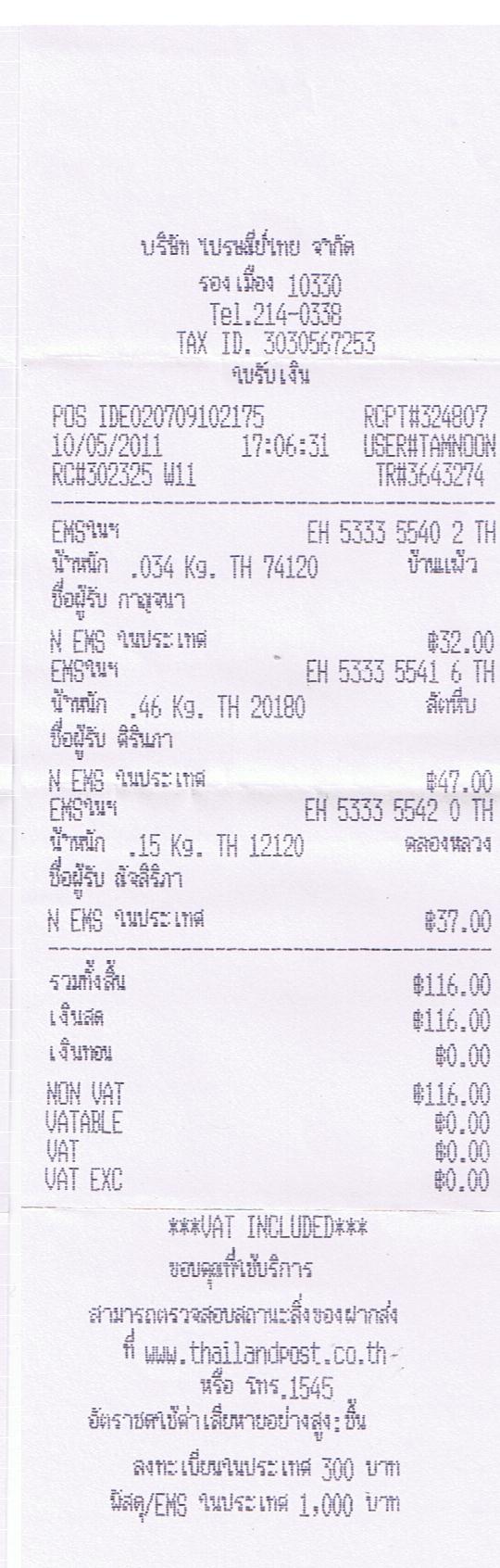 ยืนยันการชำระเงิน คุณณัจสิริภา ส่งสินค้าให้เรียบร้อยแล้วนะคะ EH 533355420 TH ขอบคุณมากๆค่ะ เด๋วสแกนใบเสร็จให้นะคะ |