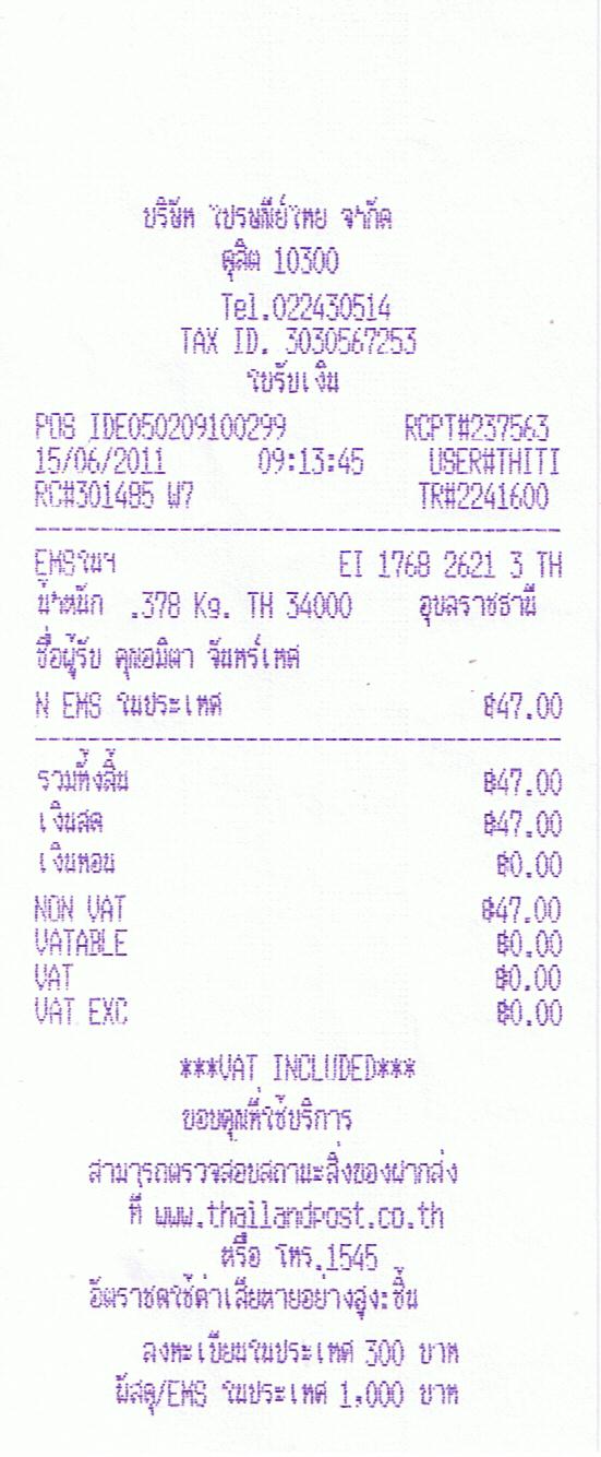 คุณอมิตา > EI 176826213 TH ส่งสินค้าให้เรียบร้อยแล้วนะคะ โอกาศหน้าเชิญเลือกชื้อเครื่องสำอางเกาหลีของแท้คุณภาพที่ร้านของเราได้อีกนะคะ ขอบคุณมากๆค่ะ