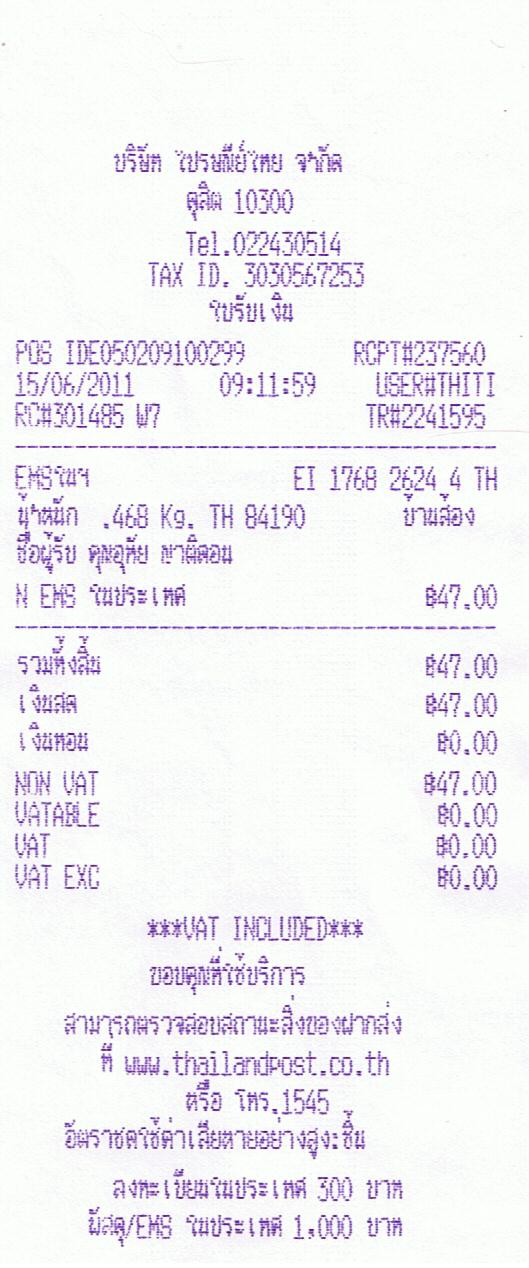 คุณอุทัย > EH 176826244 TH ส่งสินค้าให้เรียบร้อยแล้วนะคะ โอกาศหน้าเชิญเลือกชื้อเครื่องสําอางเกาหลีคุณภาพของแท้ที่ร้านของเราได้อีกนะคะ ขอบคุณมากๆค่ะ