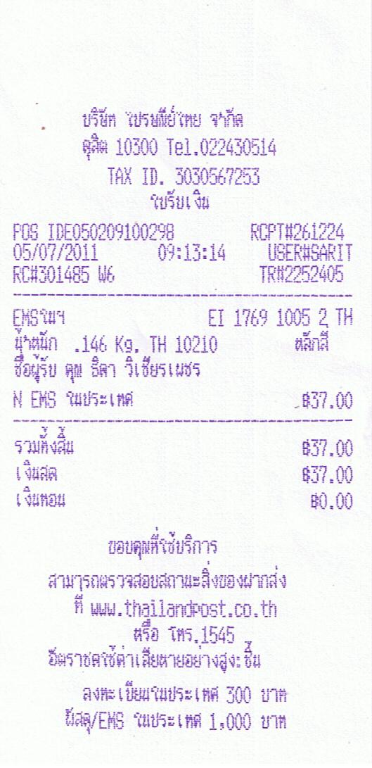 คุณธิดา > EI 176910052 TH ส่งสินค้าให้เรียบร้อยแล้วนะคะ โอกาศหน้าเชิญเลือกชื้อเครื่องสําอางเกาหลีคุณภาพที่ร้านของเราได้อีกนะคะ ขอบคุณค่ะ