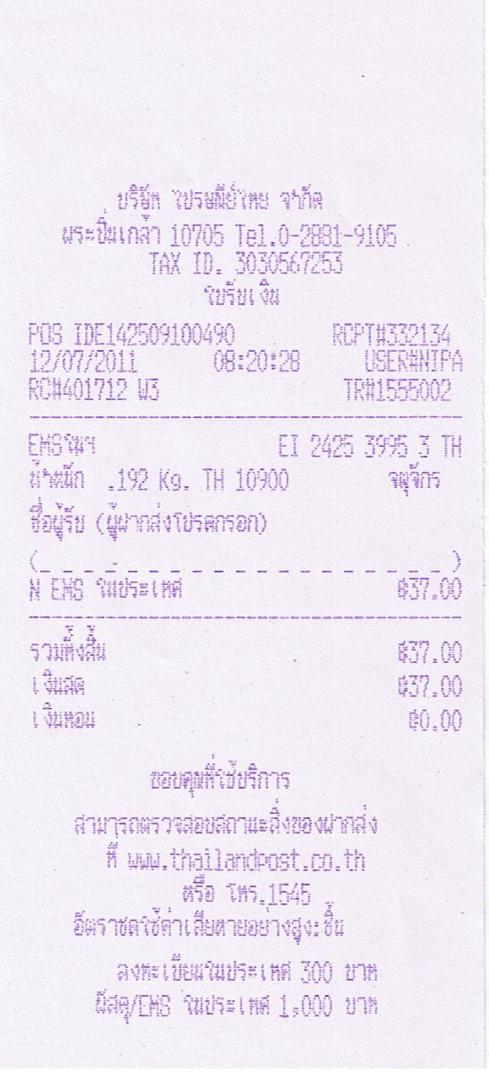 คุณเมย์ > EI 242539953 TH ส่งสินค้าให้เรียบร้อยแล้วนะคะ โอกาศหน้าเชิญเลือกชื้อเครื่องสําอางเกาหลีของแท้คุณภาพที่ร้านของเราได้อีกนะคะขอบคุณมากๆค่ะ