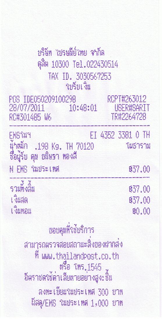 คุณขนิษฐา > EI 435233810 TH ส่งสินค้าให้เรียบร้อยแล้วนะคะ โอกาศหน้าเชิญเลือกชื้อสินค้าเครื่องสำอางคุณภาพของแท้จากร้านของเราได้อีกนะคะขอบคุณมากๆค่ะ