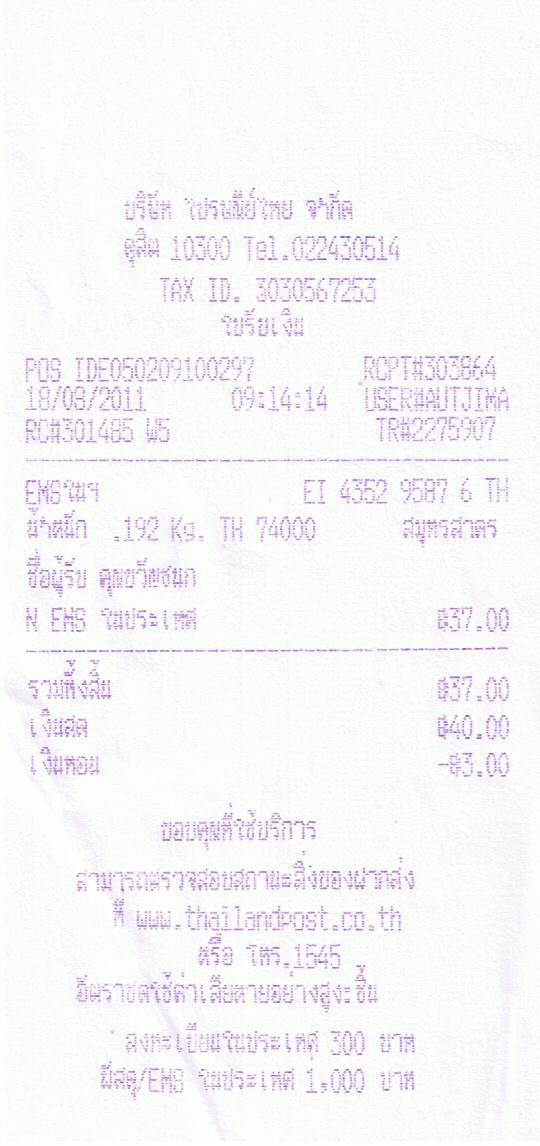 คุณขวัญชนก > EI 435295876 TH ส่งสินค้าให้เรียบร้อยแล้วนะคะ โอกาศหน้าเชิญเลือกชื้อสินค้าของแท้กับบริการคุณภาพจากร้านของเราได้อีกนะคะขอบคุณมากๆค่ะ