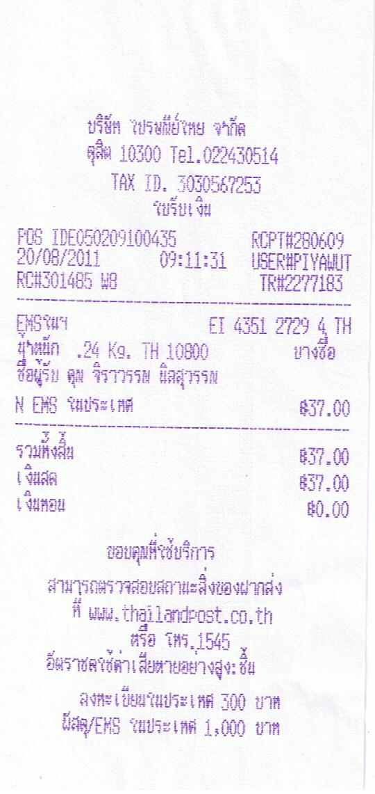 คุณจิราวรรณ > EI 435127294 TH ส่งสินค้าให้เรียบร้อยแล้วนะคะ โอกาศหน้าเชิญเลือกชื้อสินค้าเครื่องสำอางเกาหลีคุณภาพจากร้านของเราได้อีกนะคะขอบคุณมากๆค่ะ
