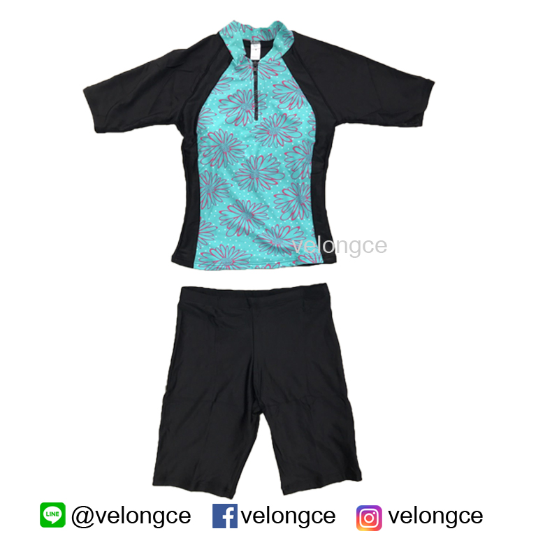 ชุดว่ายน้ำแขนสั้น แยกชิ้น ผ้า Lycra อย่างดี