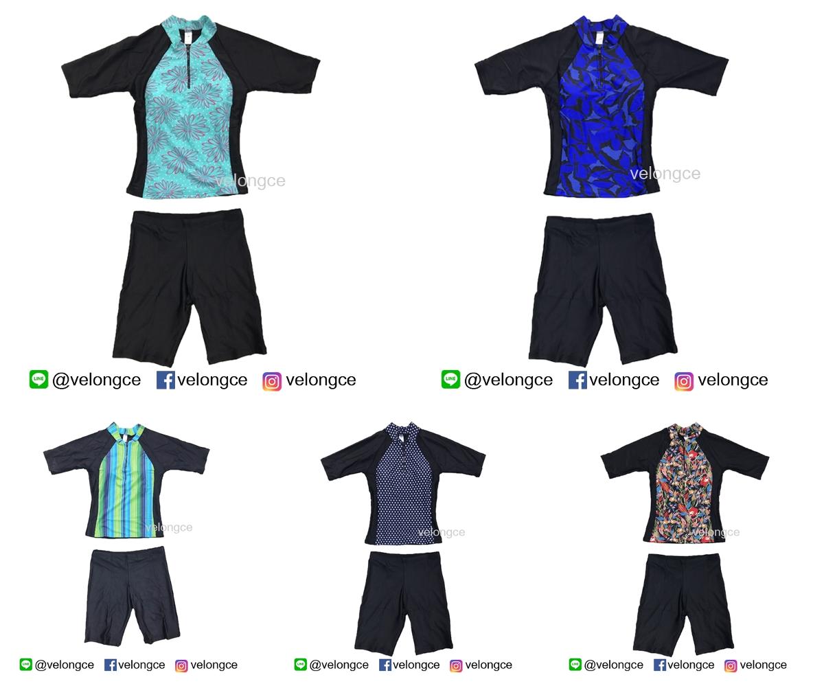 ชุดว่ายน้ำสปอร์ต 2 ชิ้น แขนสั้นคู่กางเกงขาสั้น Size M-L-XL-XXL-3XL ลาย
