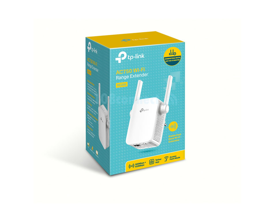 WI-FI RANGE EXTENDER (อุปกรณ์ขยายสัญญาณ) RE205 AC750 Wi-Fi Range Extender 2.4GHz band(300Mbps) and 5GHz band(433Mbps)