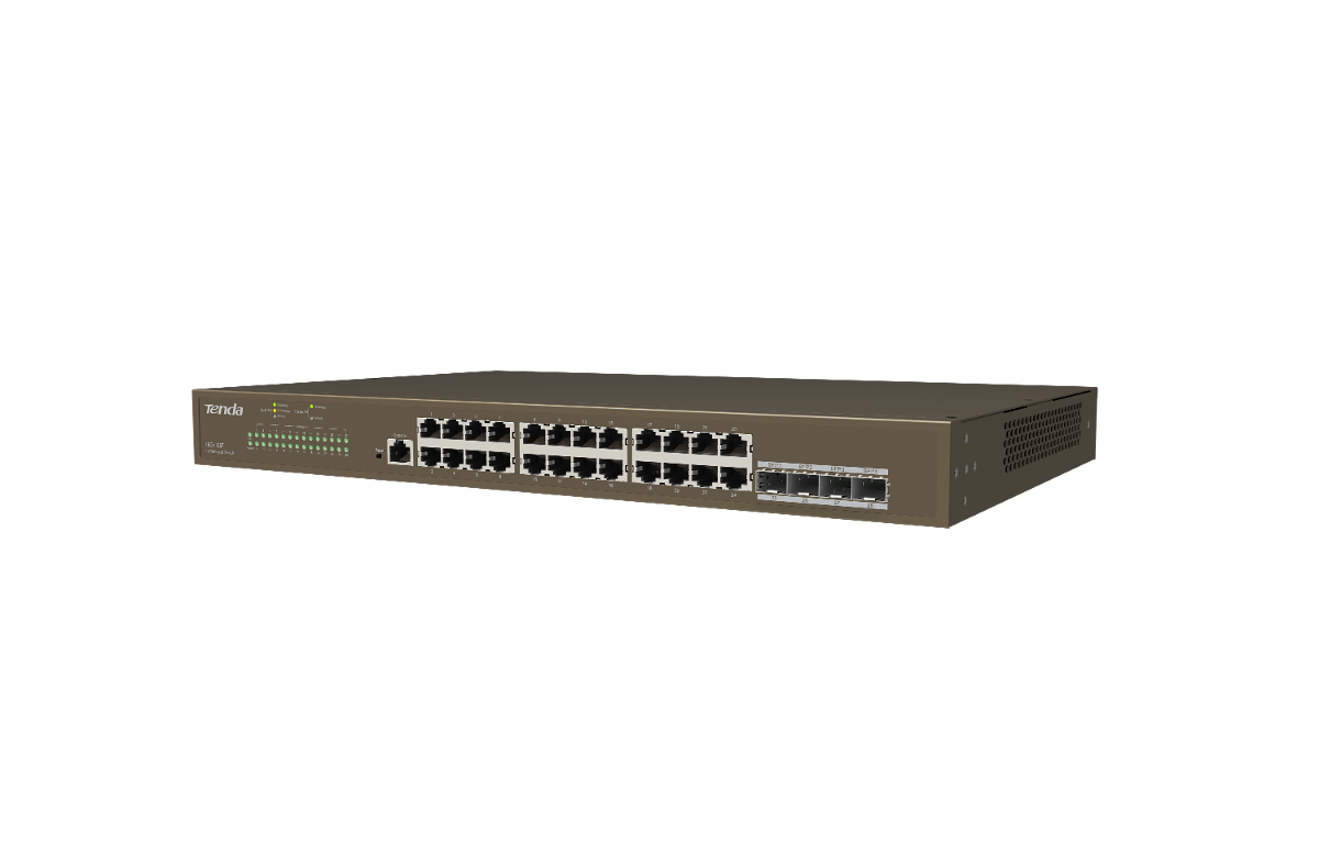 TEG5328F is a Tenda Layer-3 managed switch. To meet the demand of high-performance access, the switch provides 24 10/100/1000 Mbps Base-T Ethernet ports and 4 separate 1000 Mbps Base-X SFP ports. With an innovative hardware structure and software platform, it features a powerful processing capacity and complete security protection mechanism, making management and maintenance easy and simple, fully meeting the demands of high-density user access and high-performance aggregation, ideal for the aggregation layer or core layer of such medium to large networks as enterprises and campuses.