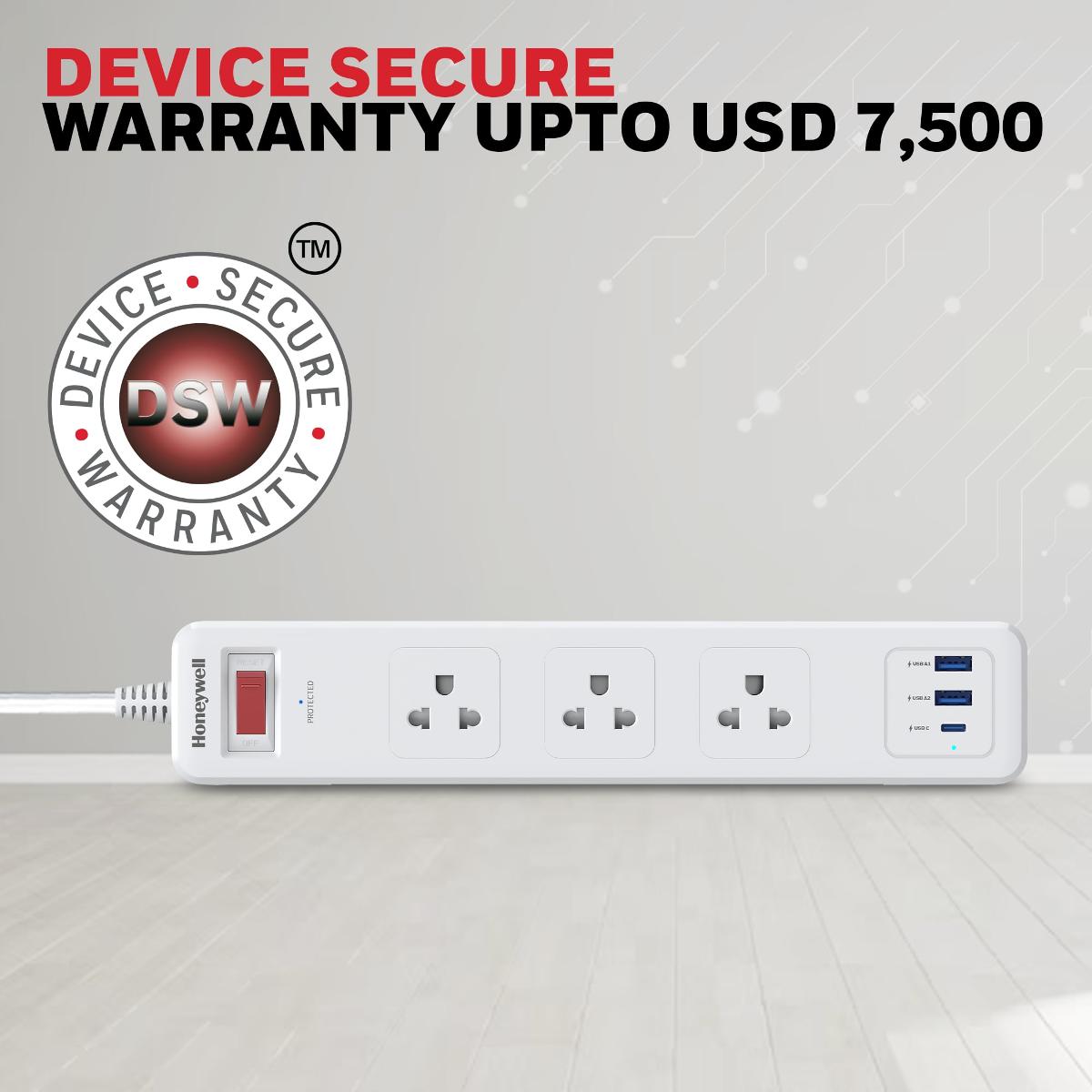 ปลั๊กไฟ 3 ช่อง Honeywell 3 Outlet Surge Protector with 1xType C & 2xUSB HC000038/SRG/1.8M/WHT/3/2U/PD20W/TH