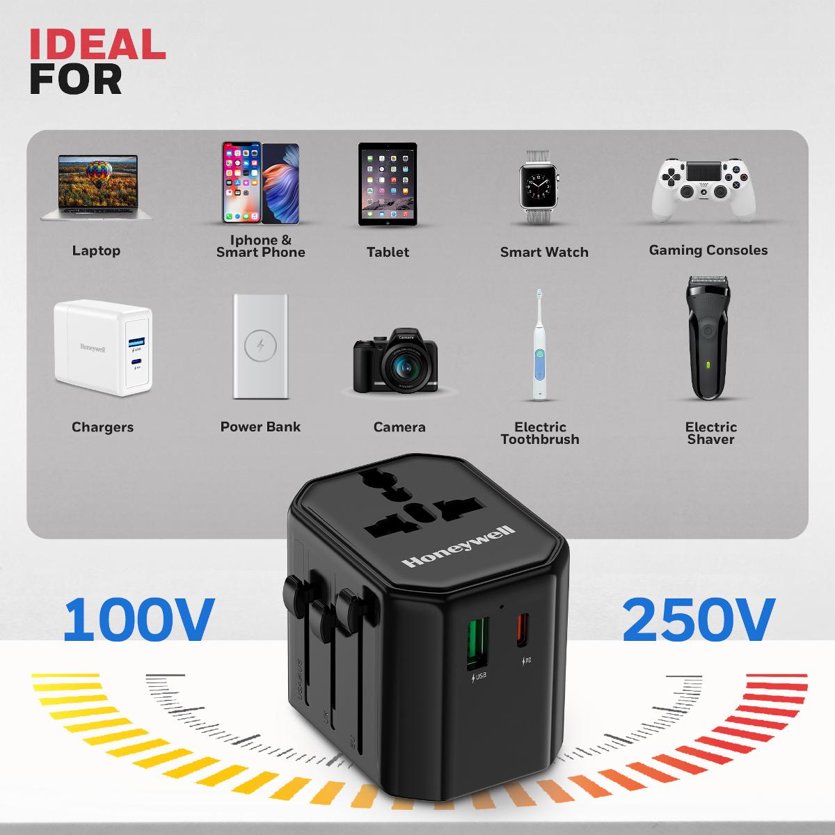 Honeywell Universal World Travel Adapter 38W - Black HC000064/CHG/TRV/BLK/38W