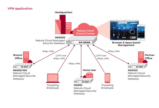 NSG50 Nebula Cloud Managed Security Gateway 10/100/1000 Mbps RJ-45 ports 4 x LAN (GbE) 2 x WAN (1x SFP, 1x GbE)