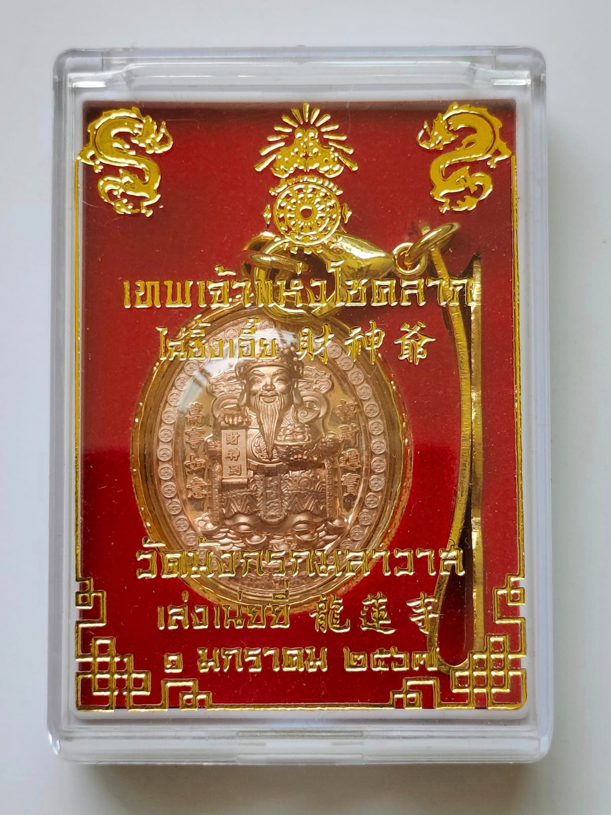 เหรียญ เทพเจ้าแห่งโชคลาภ ไฉ่ซิ้งเอี๊ย เนื้อทองแดงกะหลั่ยนาค วัดมังกรกมลาวาส เล่งเน่ยยี่ 1 มกราคม 256