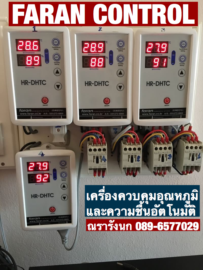 FARAN HUMIDITY OR TEMPERATURE CONTROL สุดยอดเครื่องควบคุมอุณหภูมิความชื้นอัตโนมัติจากเกาหลี หัว sensor ทองเหลือง ทนทาน ความยาวสาย 15/20/25/30 ม. ให้ค่าเสถียร ไม่แปรปรวน ต่อกับเครื่องพ่นหมอกหรือเครื่องทำความชื้นทุกแบบทุกประเภท เพื่อให้สั่งการให้เครื่องพ่นทำหรือหยุดทำงานอัตโนมัติเมื่อได้ความชื้นที่กำหนด