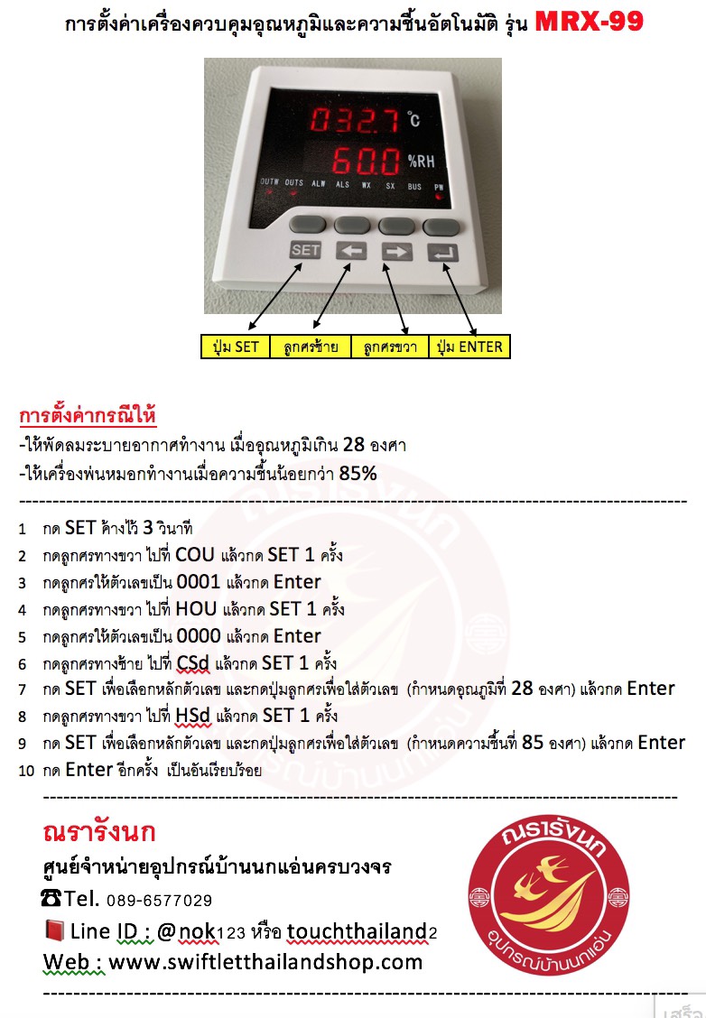 E39A - WIRELESS THERMOMETER WITH RH READING TF-12 Temperature and Humidity Controller (บ้านนก 2 ชั้น) THM-01: Temperature & Humidity Monitor (สำหรับบ้านนก 1 ชั้น) TF-11 Temperature and Humidity Controller+Digital TIMER E24 - LASER INFRARED THERMOMETER UT-300S GUN