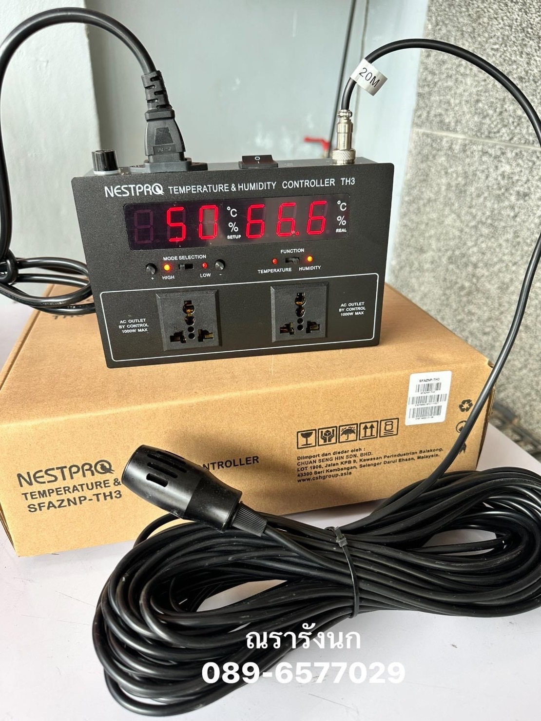 E7 - NESTPRO TH3 HUMIDITY OR TEMPERATURE CONTROLLER มีหน้าจอแสดงทั้งอุณภูมิและความชื้น มาพร้อมหัวและสายเซ็นเซอร์ยาว 20 ม. สามารถต่อพ่วงกับเครื่องทำความชื้น เครื่องพ่นหมอก และพัดลมดูอากาศให้ทำงานอัตโนมัติ คุ้มค่าเกินราคา