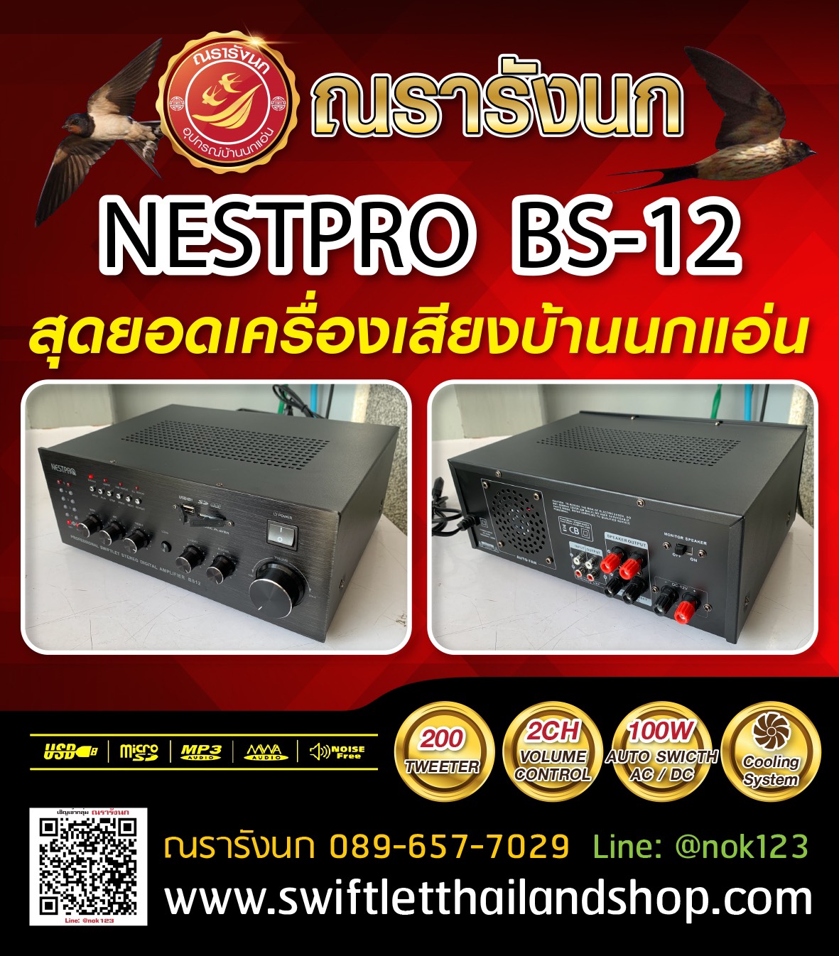 B8H-Nestpro Amplifier MXBS12-2ch เครื่องเสียงรุ่นเล็กคุณภาพสูง จาก NESTPRO รองรับ USB และ SD Card กำลังขับลำโพง TWEETER 200 ตัว แยกอิสระ 2 Channel ปรับเสียงแยกได้อิสระแต่ละ Channel มีพัดลมระบายอากาศระบายความร้อนในตัว