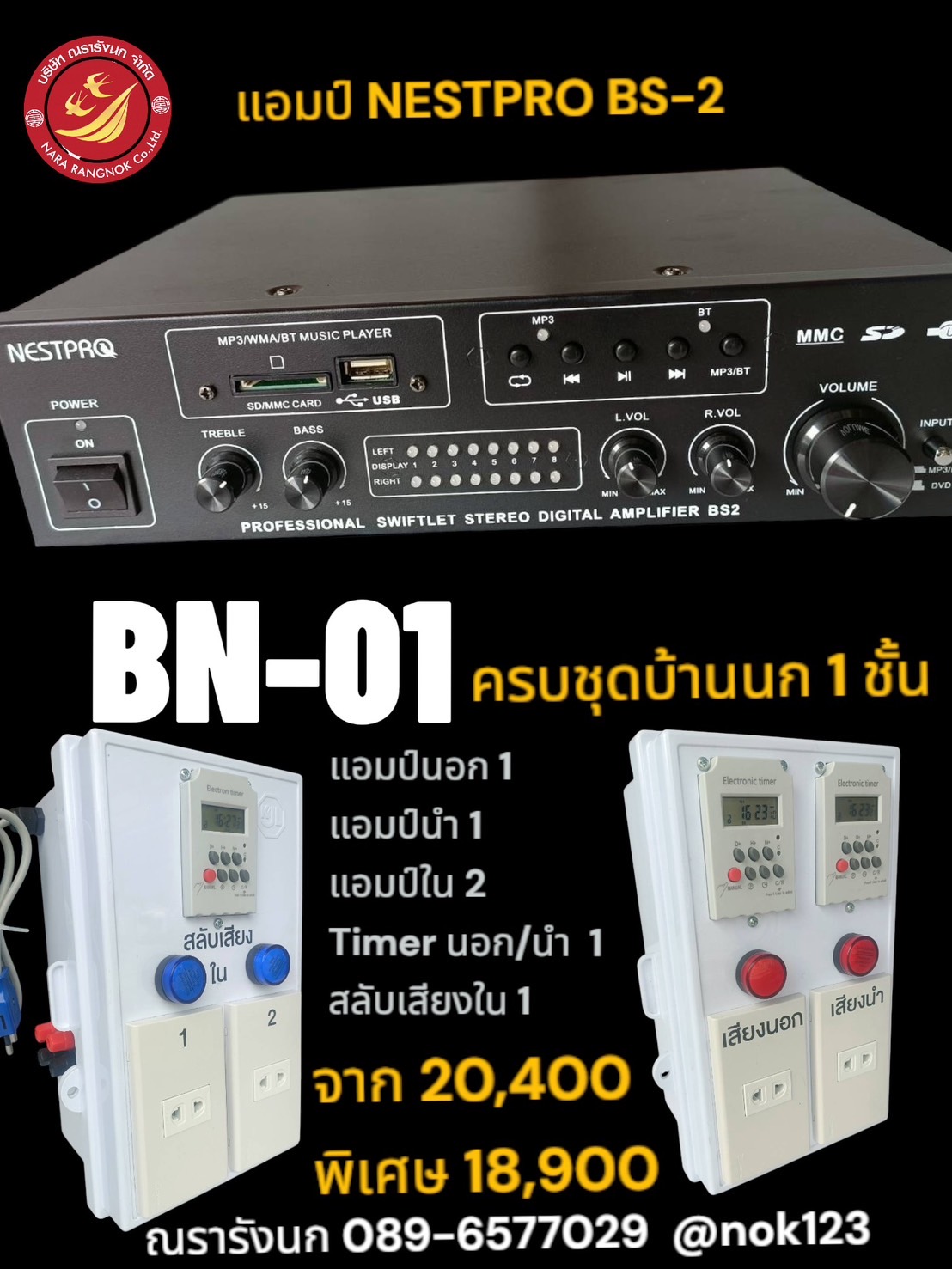 BN-01 ชุดเครื่องเสียงพร้อมชุดทามเมอร์ สำหรับบ้านนก 1 ชั้น