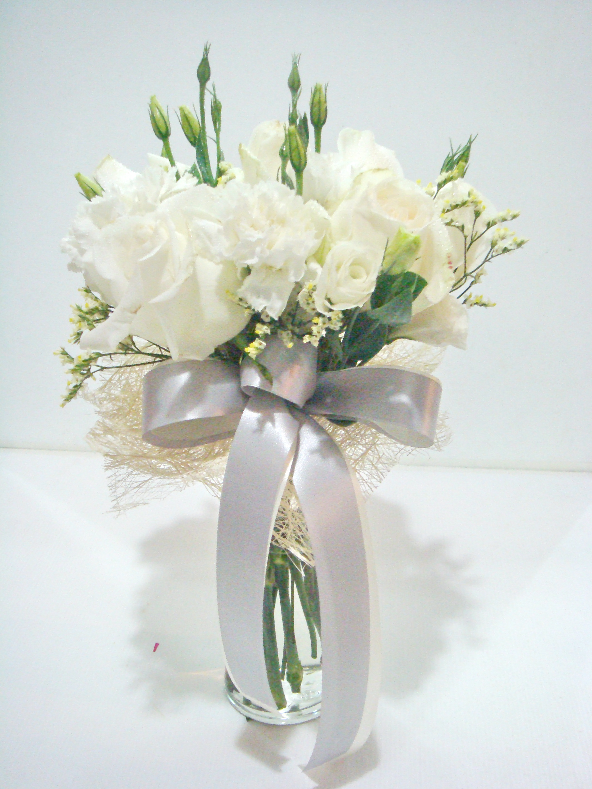 ดอกไม้โทนชมพูที่ใช้ไฮเดนเยียร์ชมพูลิลลี่ขาวกุหลาบขาวแซมไลเซ็นทัสขาวออกแนวอ่อนหวาน