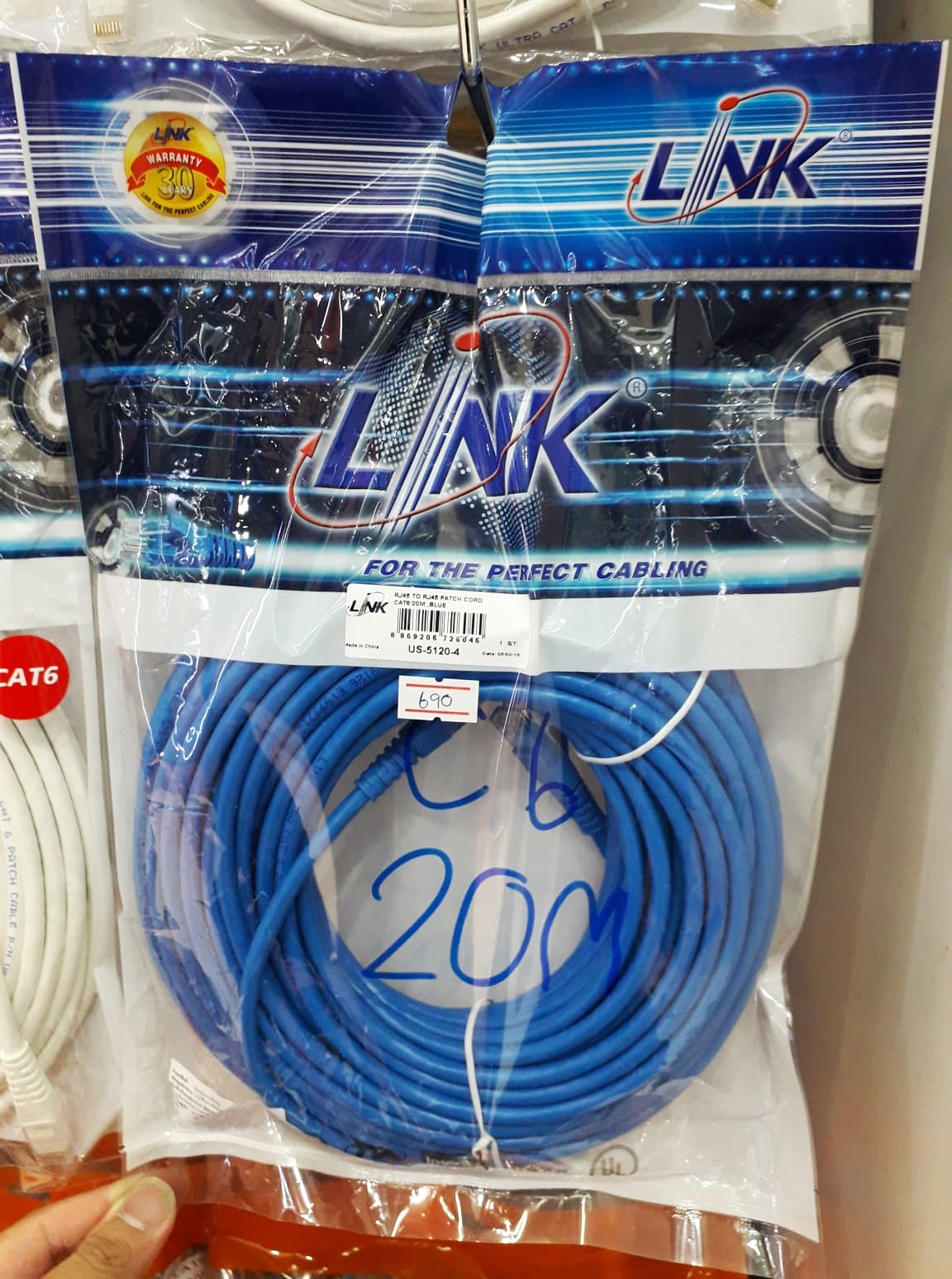LINK US-5030-4 CAT6 RJ45-RJ45 Patch Cord ความยาว 20 เมตร/สีน้ำเงิน
