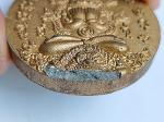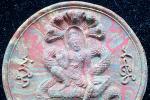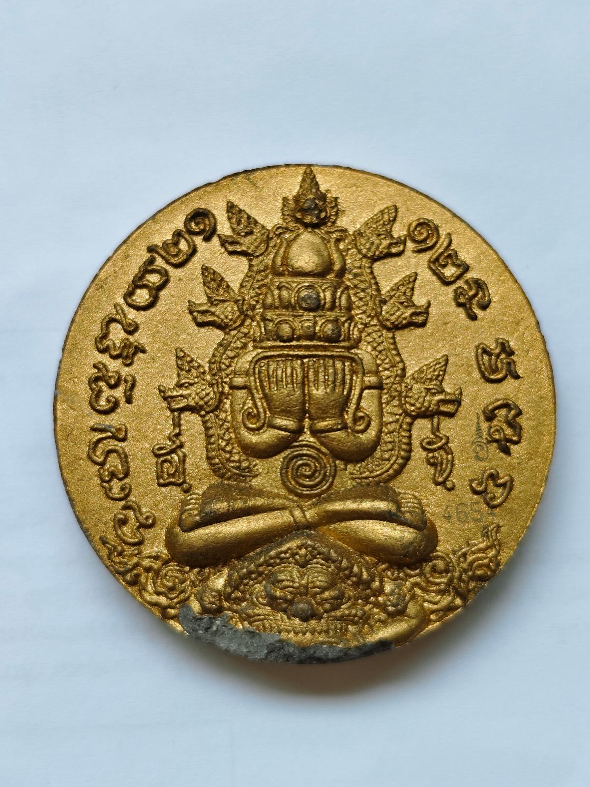 พระผงปิดตาพังพะกาฬ จตุคาม รามเทพ รุ่นสมบัติจักรพรรดิ์ ปี2549 เนื้อดำปัดบรอนซ์ทอง มีรอยกระเทาะ สภาพตามรูป มีโค๊ดมีเลขประจำพระ4654 ขนาดเส้นผ่านศูนย์กลาง 5 เซนติเมตร ไม่มีกล่องเดิมครับ