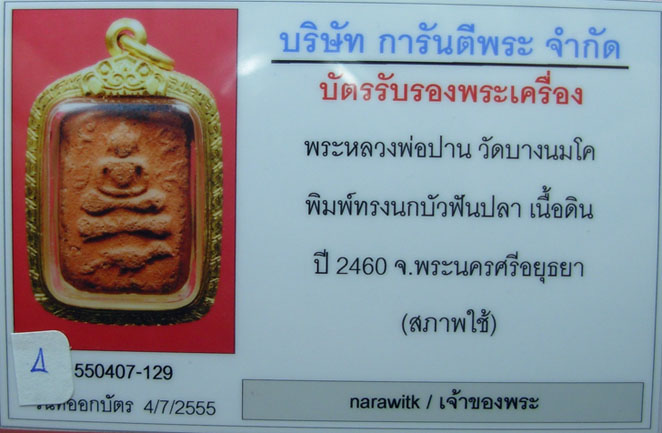 หลวงปู่ทวดอาจารย์นองวัดทรายขาว"รุ่นแรก....พิมพ์เล็กปั๊มเครื่อง" เนื้อว่าน ปี2514 พร้อมบัตรรับรอง