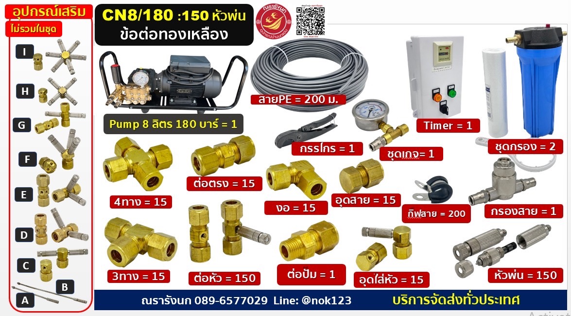 ชุดพ่นหมอกแรงดันสูง 150 หัวพ่น ข้อต่อทองเหลือง ปั๊มCOMETอิตาลี